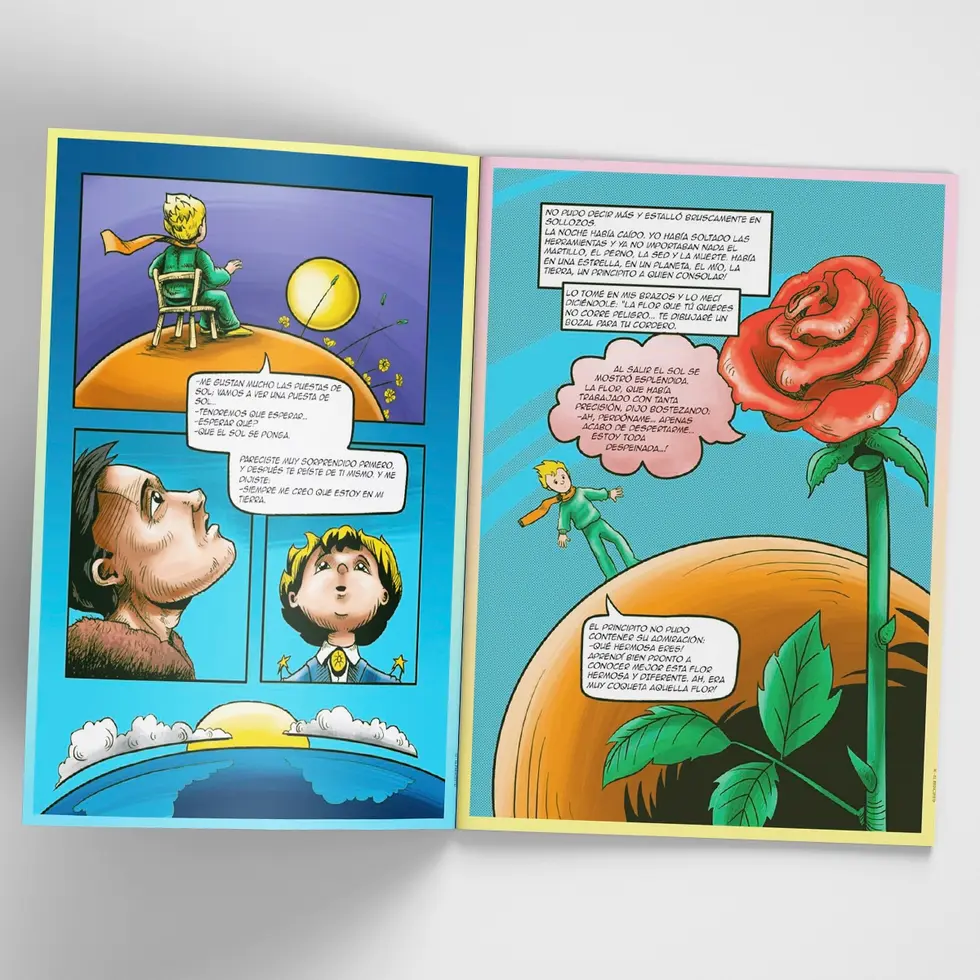 ¡Sumérgete en la mágica historia de "El Principito", ahora con un toque único! Esta edición especial presenta las encantadoras ilustraciones en estilo cómic, a todo color, que dan vida a las aventuras de este clásico atemporal de Antoine de Saint-Exupéry. Perfecto para jóvenes y adultos, este libro te llevará a un viaje inolvidable a través de los ojos de un pequeño príncipe que nos recuerda la importancia de lo esencial. ¡No te pierdas esta impresionante versión que transformará tu experiencia de lectura! ¡Consíguelo ya!